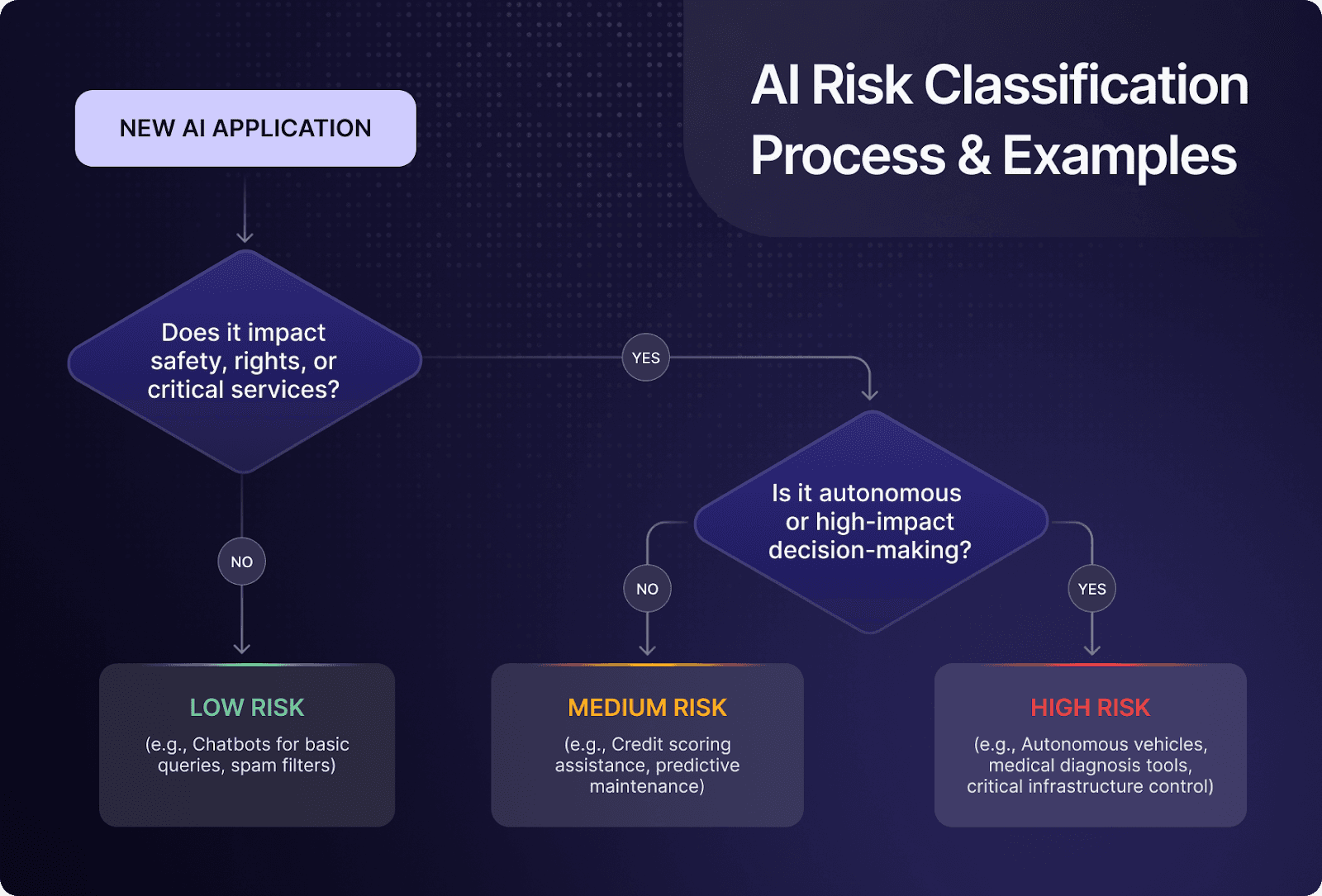 Risk management begins with systematic classification of AI use cases and applications. Organizations should maintain comprehensive inventories of all AI systems, documenting their purposes, data sources, decision-making capabilities, and affected populations. This visibility enables data-driven risk assessments and strategic infrastructure planning while identifying cybersecurity risks and compliance gaps proactively.