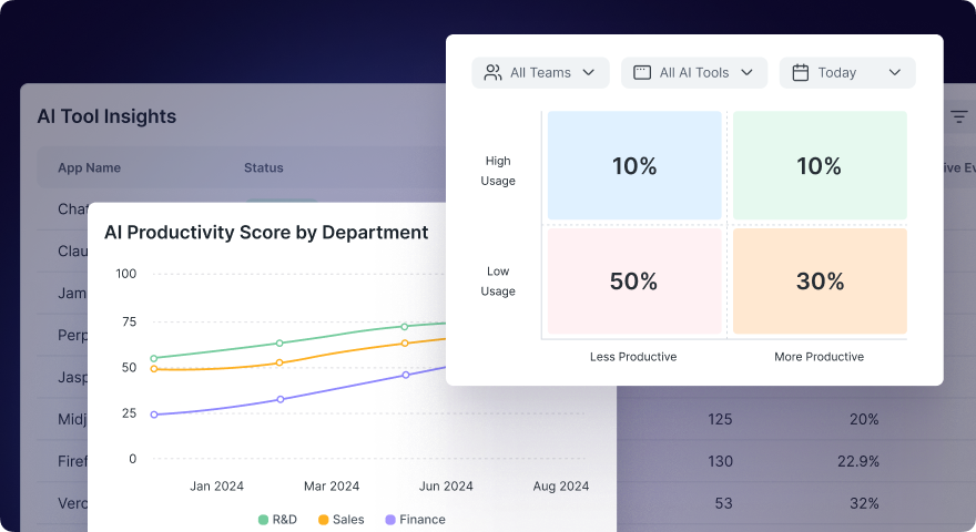 - Informed Investment Decisions: Comprehensive visibility helps finance leaders invest in high-value AI tools, eliminate low-value applications, and negotiate effectively with actual usage data.